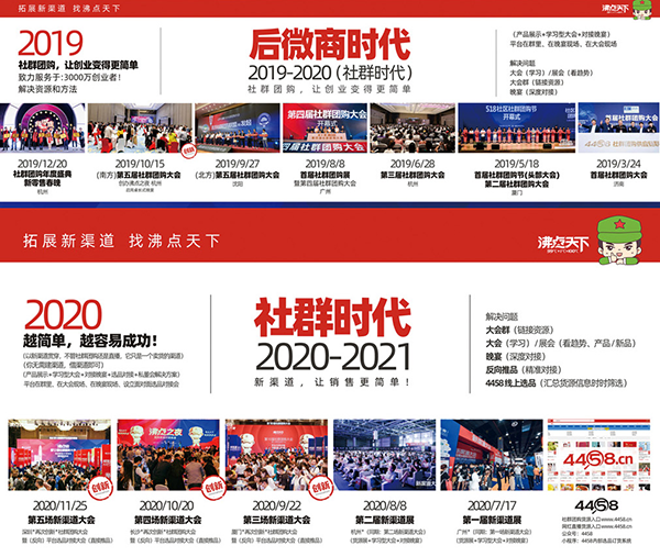 沸點天下通過二年時間,用12場大會,匯總了行業資源,解決了行業怎么干的方法問題和團購群貨源從哪里來的資源問題。