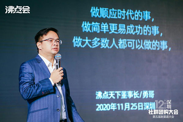勇哥,沸點天下董事長,從2003年開始創業,至今已經連續創業18年。從tob招商,到微商,到社群團購,他總是能看到風口,并能抓到風口。