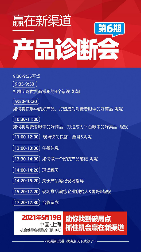 第6期產(chǎn)品診斷會(huì)將在5月19號舉辦,這是產(chǎn)品診斷會(huì)首次走進(jìn)上海,上海周邊的供貨商值得參與。