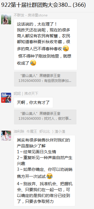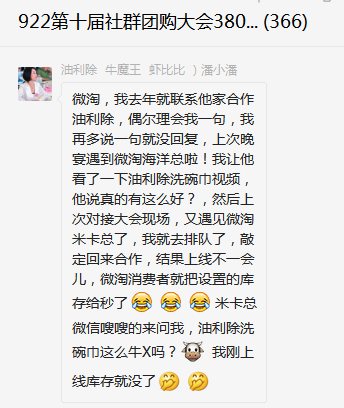 大家會看到,姜山美人的黑糖姜茶和潘總的油利除洗碗巾,在傳統渠道可能不是首選,但在社群,因為他們進入了,平臺能鏈接到他們,所以他們就成為各大平臺的首先供應商!