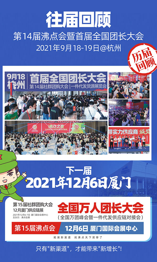 12月6-7日,社群團(tuán)購界迎來年度盛典,每年12月沸點(diǎn)天下都會(huì)舉辦行業(yè)年度盛典,今年在廈門舉辦萬人團(tuán)長大會(huì)!