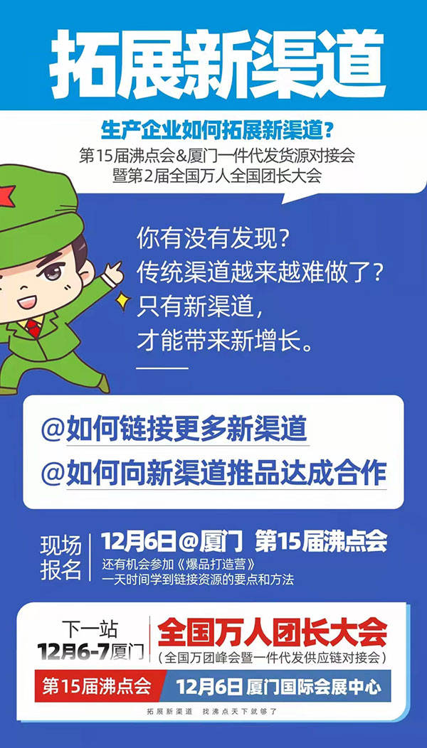 而現在報名第15屆沸點會暨12月6號廈門第2屆全國萬人團長大會,還有機會參加【單品10萬+爆品實戰營】,學會方法再去沸點會上鏈接渠道,推品更高效,增長更給力。