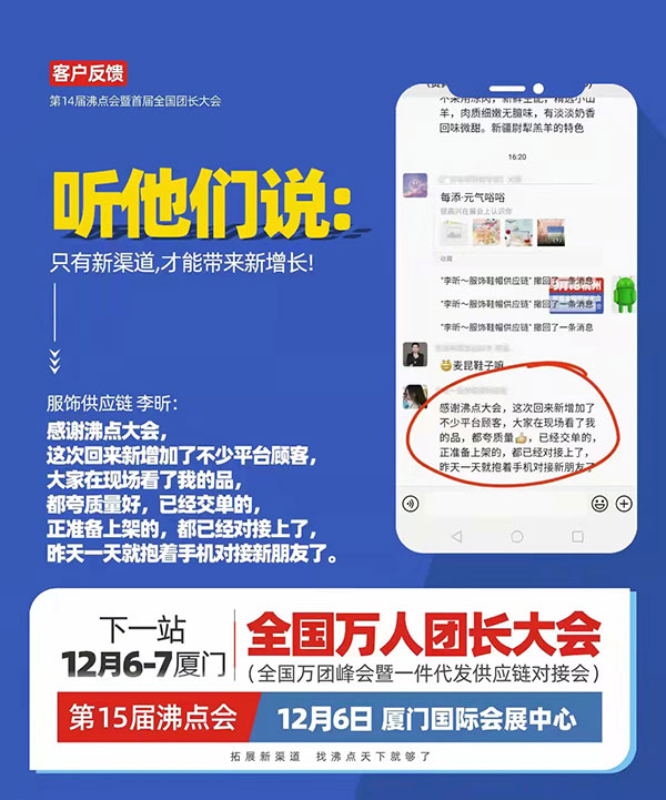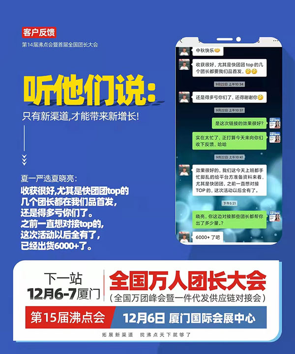 服裝企業(yè)想要拓展新渠道,12月6號(hào)廈門全國萬人團(tuán)長大會(huì)你一定要來。