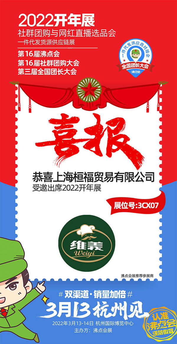 沸點(diǎn)會(huì)展(廣州)有限公司主辦的2022開年展暨第16屆沸點(diǎn)會(huì)(杭州)供應(yīng)鏈展、第16屆社群團(tuán)購大會(huì)、社群團(tuán)購與直播選品會(huì)、第三屆全國團(tuán)長大會(huì)&一件代發(fā)貨源對(duì)接會(huì),新渠道大會(huì)/新渠道展系列活動(dòng)將于2022年3月13-14日在杭州國際博覽中心隆重舉辦,聚焦雙渠道、銷量增長加倍。