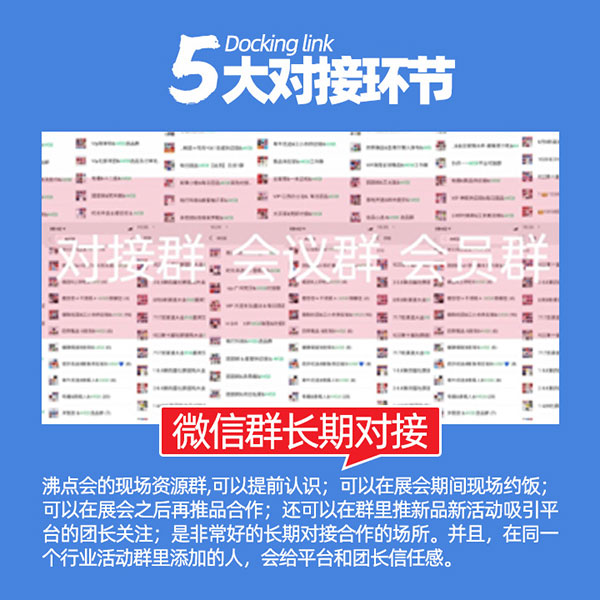 沸點(diǎn)會(huì)展創(chuàng)始人姜山說(shuō):社群供貨商本身就是一個(gè)圈子,讓大家提前建群,提前交流,提前約飯,有利于大家互通資源,快速進(jìn)入團(tuán)購(gòu)的圈子。