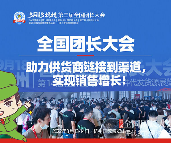 3月13-14號(hào),第3屆全國(guó)團(tuán)長(zhǎng)大會(huì)暨第16屆沸點(diǎn)會(huì),也就是2022開(kāi)年展,將在杭州國(guó)際博覽中心舉辦,想要拓展團(tuán)長(zhǎng)賽道的你,一定要來(lái)。