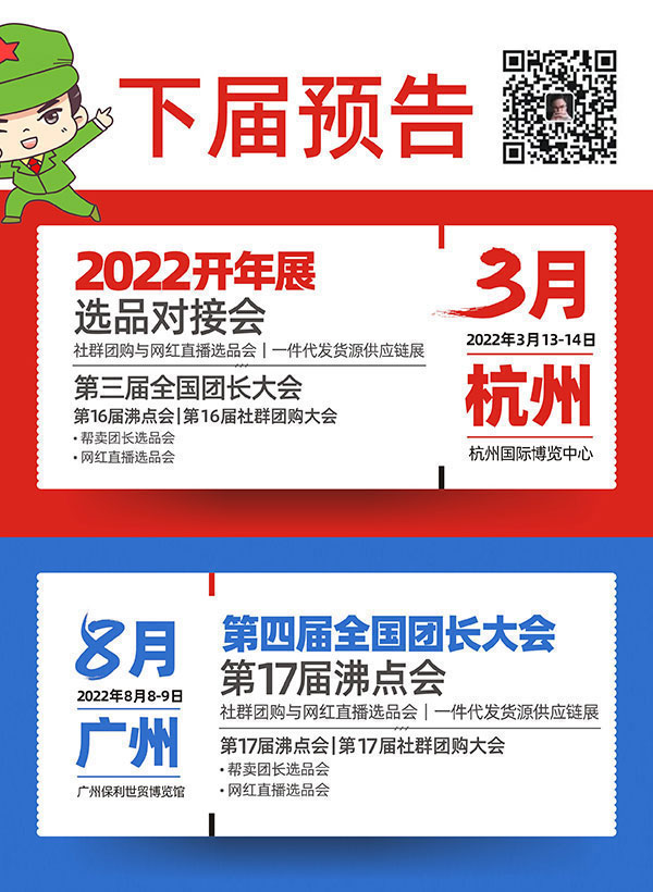 在2021年沸點天下創辦首屆全國團長大會、一件代發貨源對接會時,這是在沸點會第14屆社群團購大會的基礎上,增設的一個針對快團團、群接龍、接力GO、上車團、有贊、微店等供貨團長幫賣團長提供的一個相互經驗交流、貨源對接的一個大會。