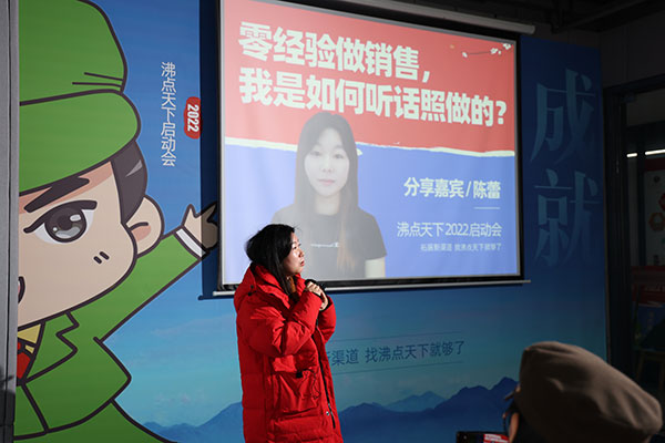 沸點天下2022啟動會,陳蕾作為入職不到1年的優秀銷售代表分享了她的成長經驗
