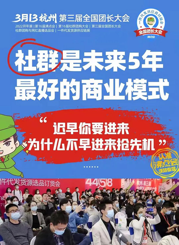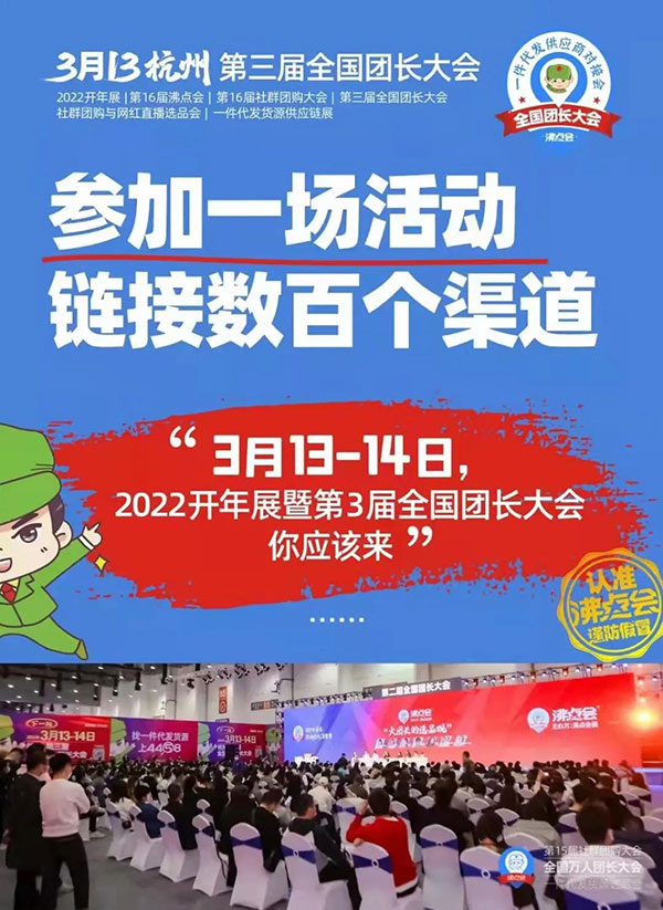 3月13-14號,第3屆全國團長大會,社群界頭部的平臺和團長都將出席,并且現場選品。如果你是保健養生類產品的供貨商,想要鏈接平臺和團長,歡迎參加本次大會,現場對接資源,實現銷售增長。