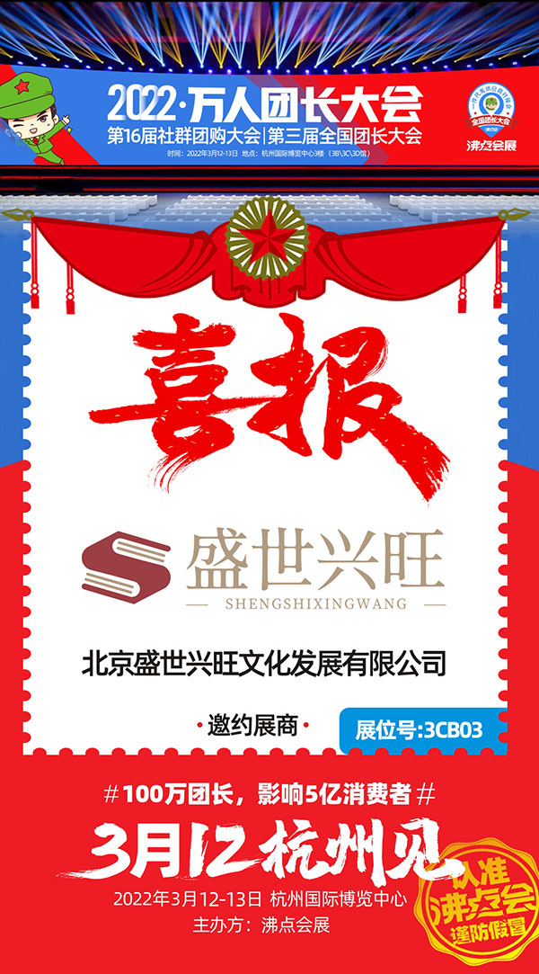 這是盛世興旺圖書(shū)供應(yīng)鏈?zhǔn)状螀⒓臃悬c(diǎn)全國(guó)團(tuán)長(zhǎng)大會(huì),旨在認(rèn)識(shí)更多的團(tuán)長(zhǎng)和供應(yīng)鏈,增加資源。3月12—13日,盛世興旺圖書(shū)供應(yīng)鏈與您相約杭州國(guó)際博覽中心3CB03展位,期待和大家一起變得更好!