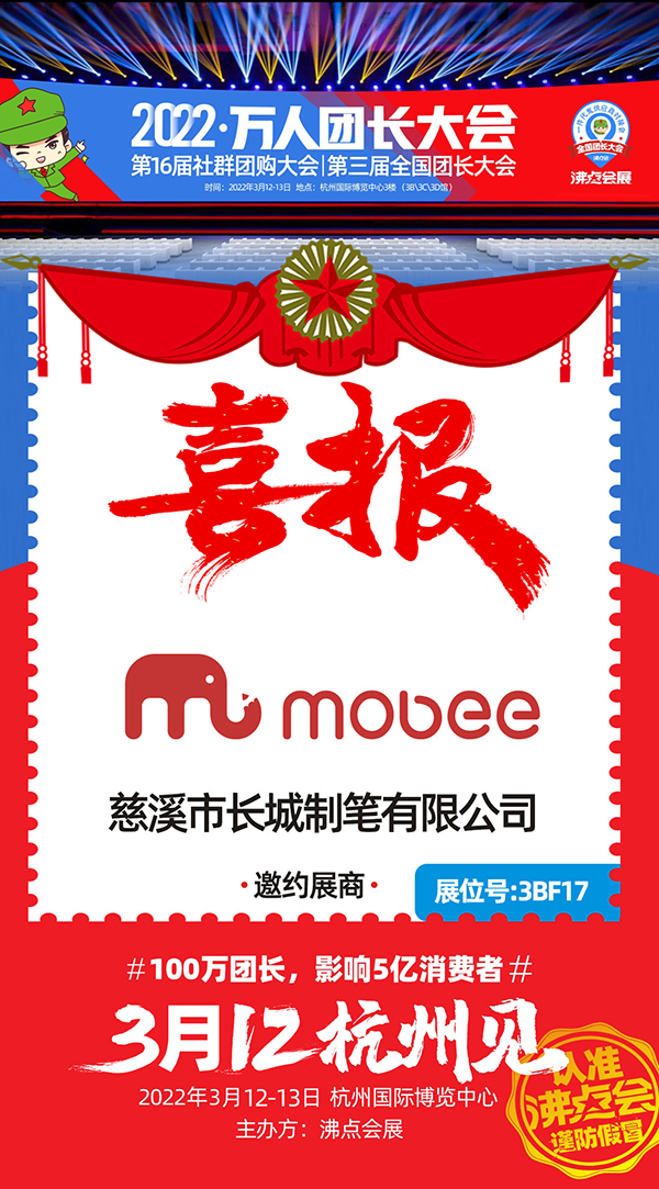 由沸點天下創辦、沸點會展主辦的2022杭州團長大會定于2022年3月12-13日舉辦,大會分為3大館,6大展區,展位面積30000平米,展商數量800+,新品爆品10000+,渠道方1000+,行業觀眾10000+,目前正在進行展位招募,慈溪市長城制筆有限公司受邀參展此次活動!