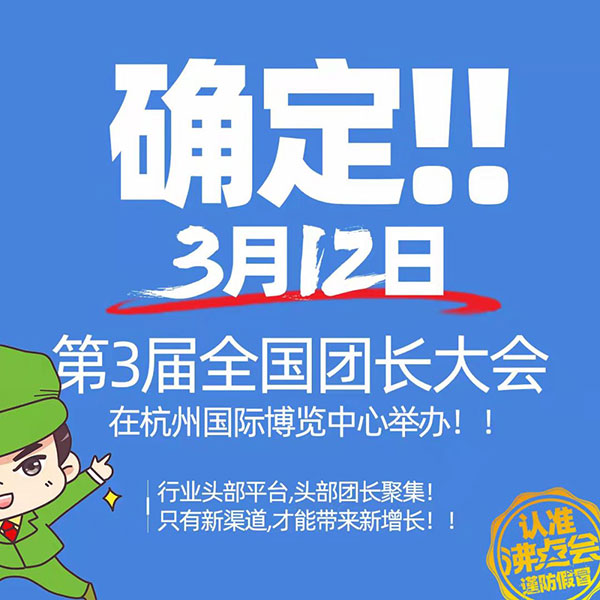 3月12號(hào),杭州國際博覽中心,第3屆全國團(tuán)長大會(huì),想要拓展新渠道,實(shí)現(xiàn)銷售增長的你,一定要來。