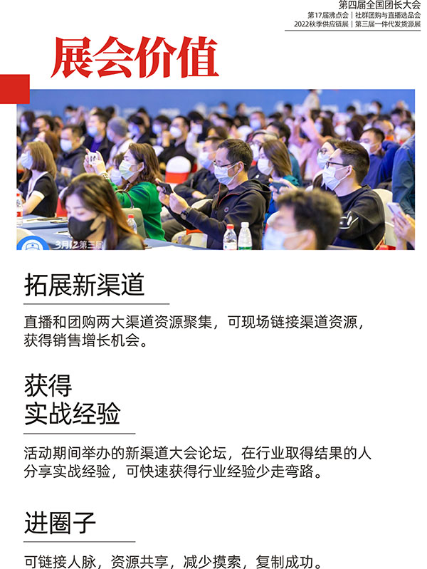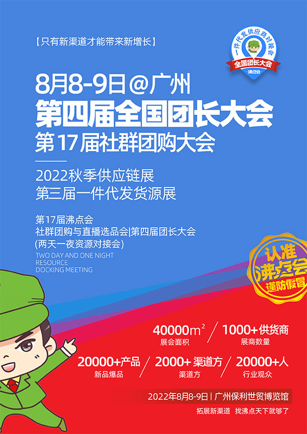 2022第17屆社群團購大會、第4屆全國團長大會將于8月8-9日,在廣州保利世貿博覽館舉辦。
