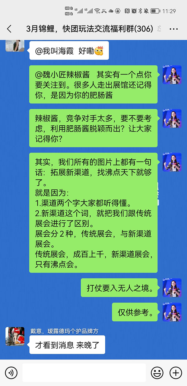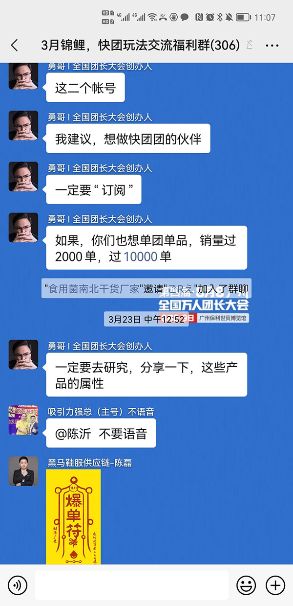 在3月錦鯉活動群里,勇哥有邀請團長進群,并在群里做分享與答疑。