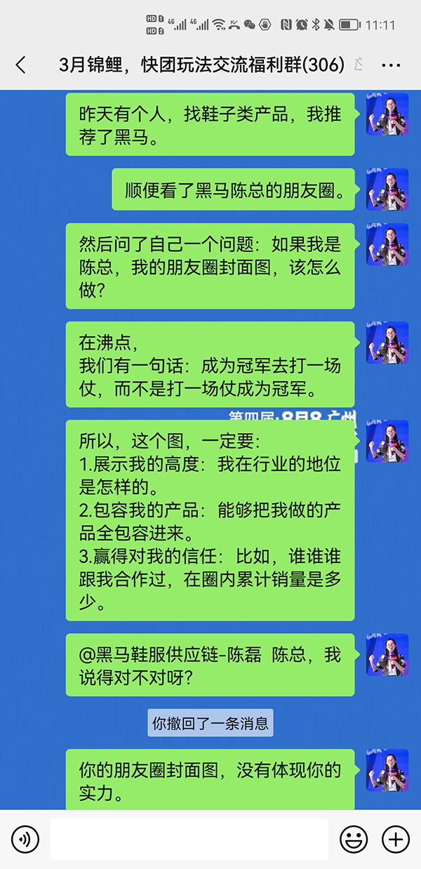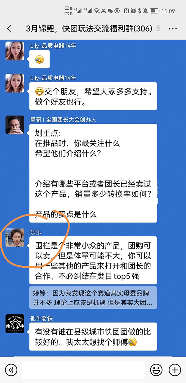 比如,今天群里討論的題目是:我想成為快團團幫賣,但是大團長都要求群成員超過300或500,我該怎么辦?