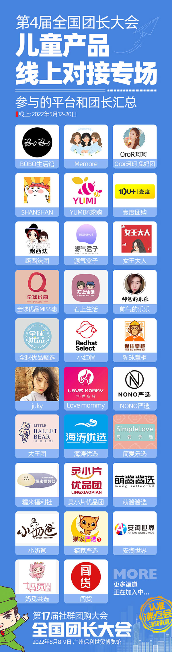 女王大人、源氣盒子、Memore、SHANSHAN 、全球優品miss惠、帥氣的樂樂 、石上生活、Yumi環球購、路西法團、oroR珂珂、兔媽團、juky、貓家嚴選、小紅帽、猩球掌柜、全球優品甄選、Love mommy、靈小片優品團、簡愛樂選、nono嚴選、bobo生活館、小奶爸、萌醬醬選、糯米福利社、海濤優選、壹度團購、大王團…