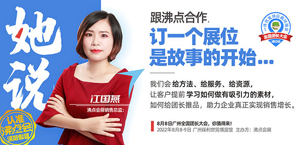 燕子說:跟沸點(diǎn)合作,訂一個(gè)展位是故事的開始,我們會給方法、給服務(wù)、給資源,讓客戶提前學(xué)習(xí)如何做有吸引力的素材,如何給團(tuán)長推品等,正如劉總說的,學(xué)會了怎么樣對接團(tuán)長,展會上就得心應(yīng)手了,提前給他推薦的團(tuán)長,也開團(tuán)合作了。