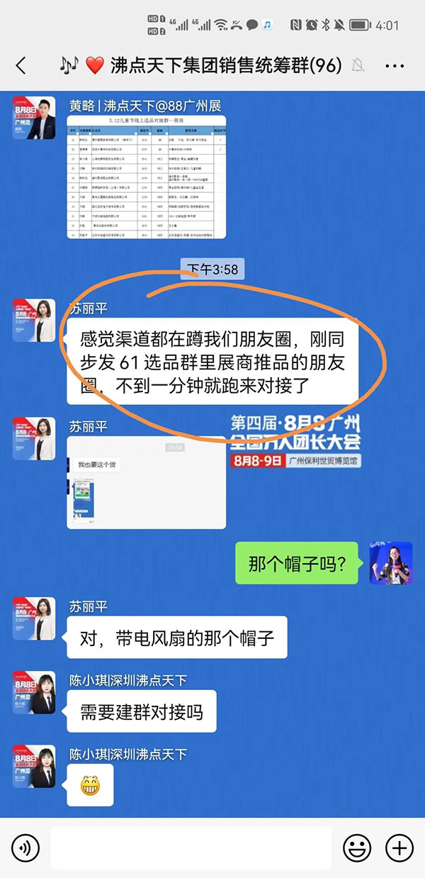 沸點會展工作人員將重點信息在朋友圈宣傳;同時好的素材也會在公眾號推文,視頻號傳播,吸引更多有需求的渠道方來選品。