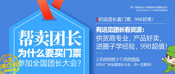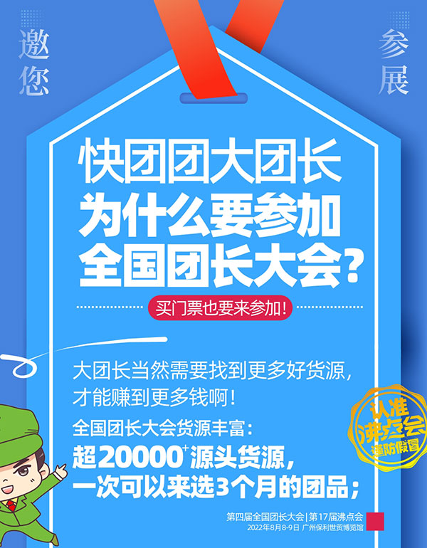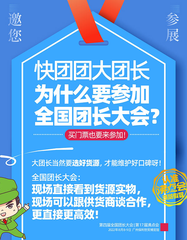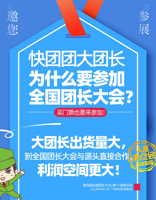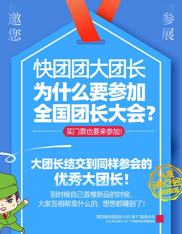 8月8號,第4屆全國團長大會,將在廣州保利世貿博覽館舉辦,歡迎更多大團長前來參加,找品合作,實現銷售業績的快速增長!