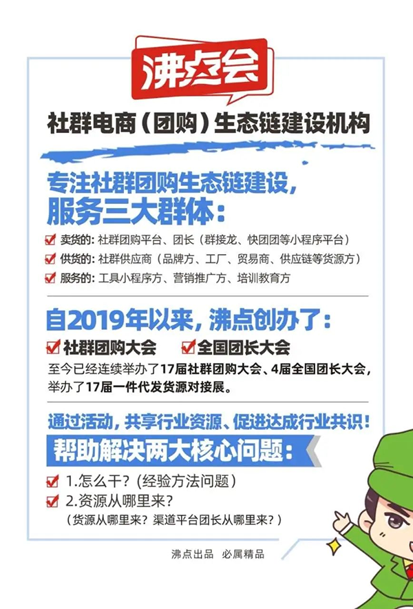 在方法上,沸點給展商做會前培訓,讓展商了解行業,準備好物料,這樣對接后就可以直接開團;同時,沸點也在做幫賣團長的培訓,讓大家了解消費者,更懂得產品的宣傳,從而達到拿到產品就可以賣貨。