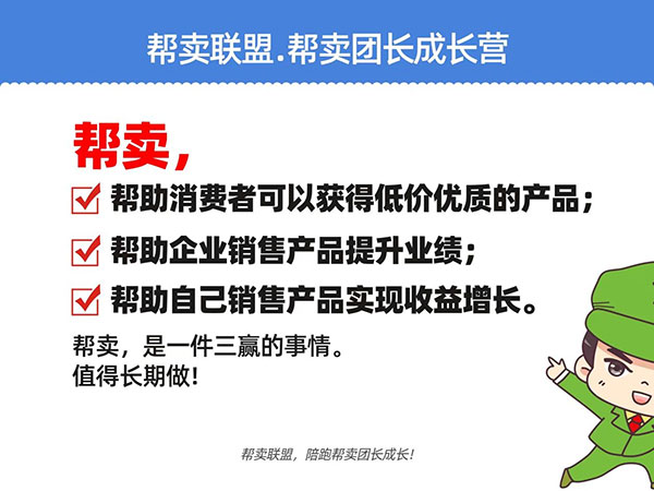 幫賣,幫助消費者可以獲得低價優質的產品;幫助企業銷售產品提升業績;幫助自己銷售產品實現收益增長。