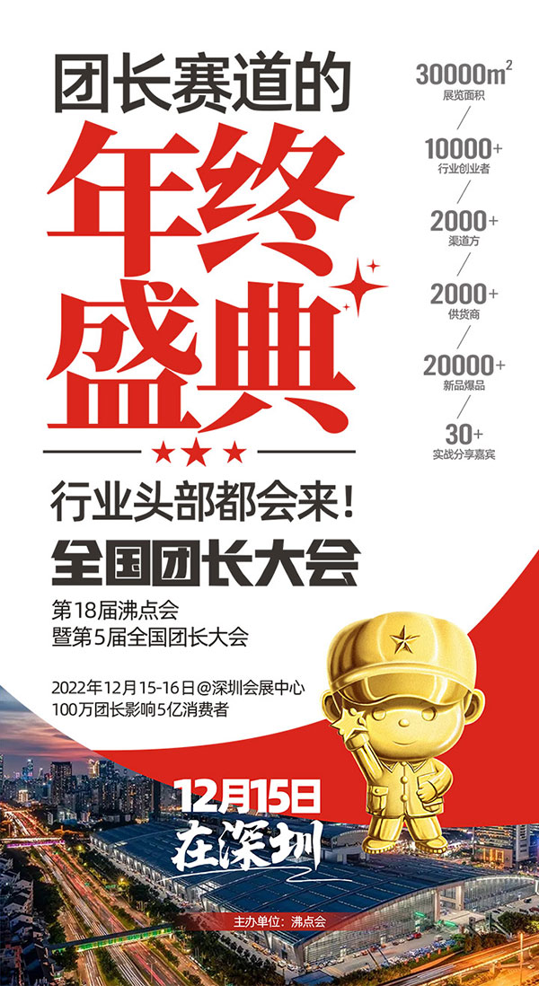 總之,12月深圳全國團長大會,30000平展覽面積,超10000+行業新品爆品,超10000+行業從業者,超2000+渠道方,將助力更多團長,平臺,通過沸點的全國團長大會實現銷售增長。