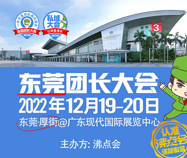 從全國團長大會主辦方沸點會了解到,2022私域電商的收官之作,第五屆全國團長大會將于12月19-20日在東莞厚街的廣東現代國際會展中心舉辦。