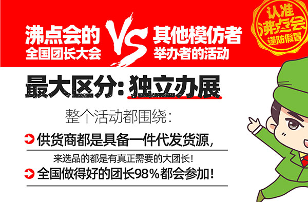 1、沸點會自辦的專業團長大會及一件代發貨源展