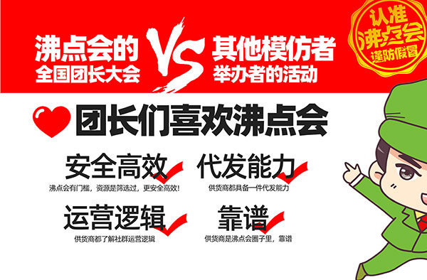 A.沸點會每年三屆的全國團長大會精細化的組織趨勢發展分享及幫助渠道團長對接一件代發貨源