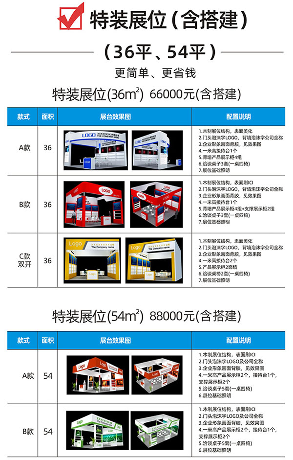 多款精美特裝包搭建方案,讓你無憂參展。