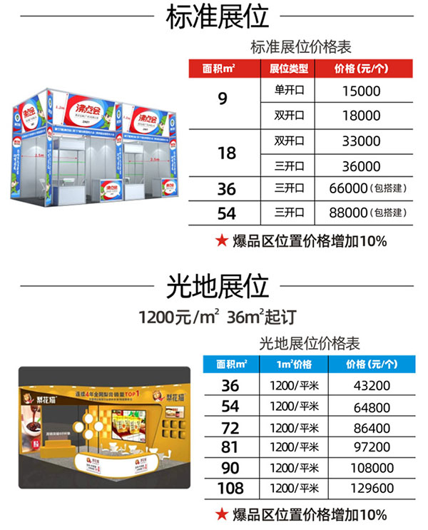 有各種面積的展位供申請:36㎡、54㎡、72㎡、108㎡、252㎡……