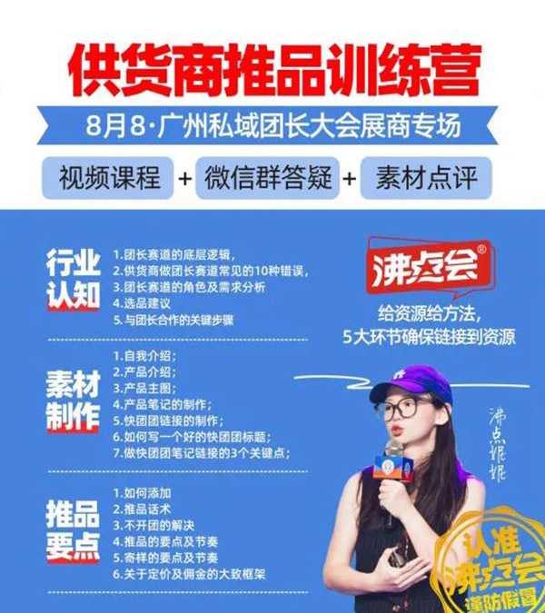 通常到了這個環節后,有些供貨商就會發現,團長提到要有專業的對接資料才能上架開團銷售產品,那如何做到這一點呢?沸點會有專業的展前培訓與幫助供貨商了解行業,提前準備對接素材。