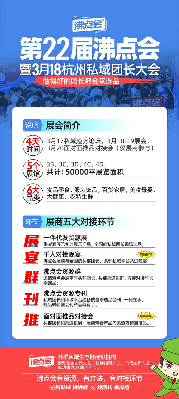 沸點會有5大對接環節,讓參加318杭州大健康新渠道對接會的大健康企業對接到私域團長,私域平臺;