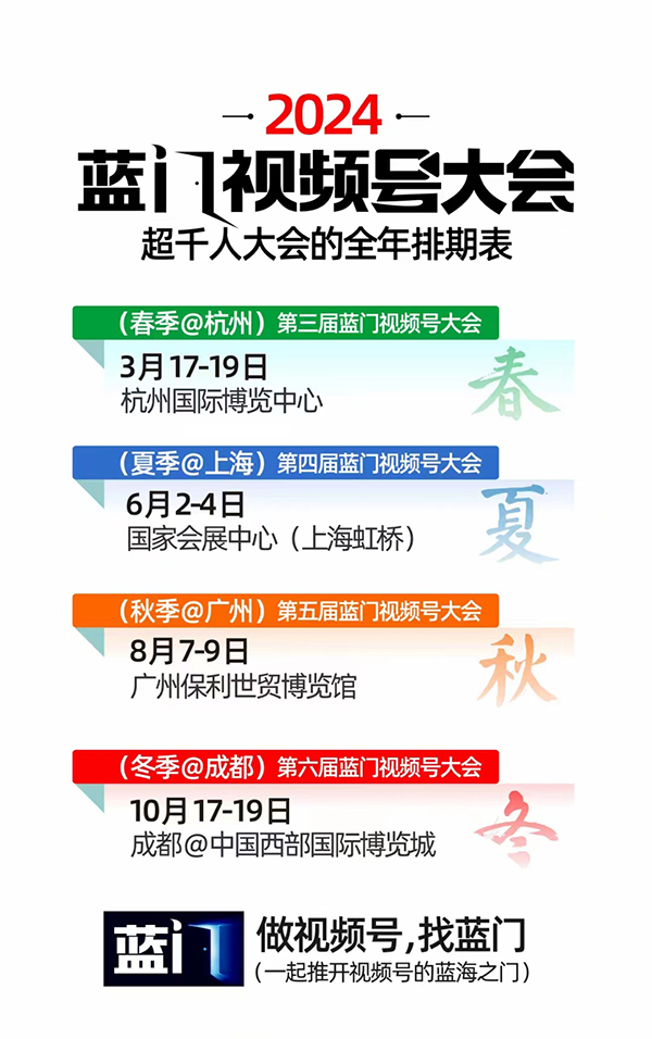 2024年過完年,藍門公司將在杭州舉辦視頻號大會,時間定在3月17-19日在杭州國際博覽中心。