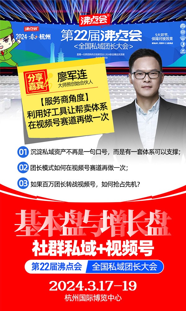 廖總這次會跟大家主要分享工具在視頻號這塊的運用,有做自己私域體系,或是想要搭建自己私域體系的伙伴一定要聽。