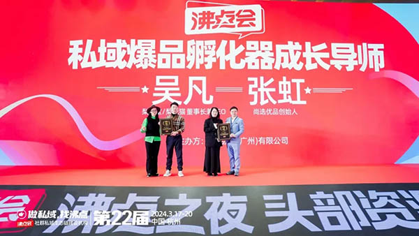 現場頒發了私域爆品孵化器成長導師:梨多寶/梨花貓 董事長兼CEO吳凡,尚選優品創始人張虹。