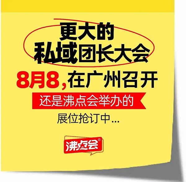 下一屆,8月8,廣州私域團(tuán)長(zhǎng)大會(huì),暨,秋季新品爆品展選品會(huì),更大的規(guī)模,更大的影響力。