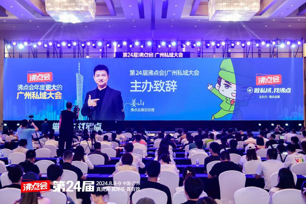 今天,我們齊聚一堂,迎來了立秋的節氣,也迎來了我們沸點會的第24屆盛會。在此,我謹代表沸點會主辦方,向各位表示最熱烈的歡迎。本屆沸點會規模空前,六大展館全開,兩大論壇同步進行學習研討。自2015年我們首次踏入私域渠道至今,十年磨一劍,一路上都有你們的見證與支持,這種相伴前行的感覺無比珍貴。