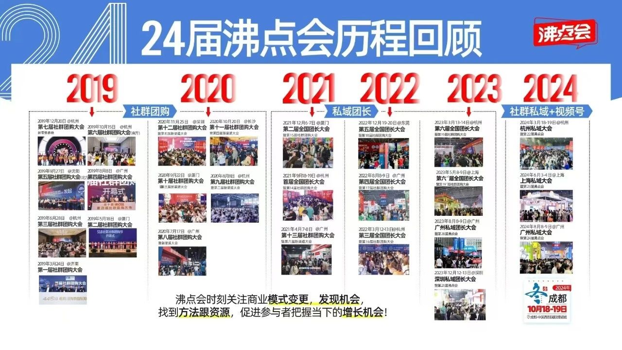 沸點會、直播+社群團購貨源供應鏈展覽會緣起于新商業消費模式的誕生,2019年首次以會加展的新私域社群模式出現,聚焦直播+社群團購貨源的上中下游產業鏈,通過策劃一系列行業領先的活動,為私域供貨商提供了一個全方位的資源整合與市場對接平臺;旨在通過精準的市場定位和高效的資源配置,促進供貨商與私域渠道的有效對接,從而實現銷售業績的持續增長和私域市場的擴展。