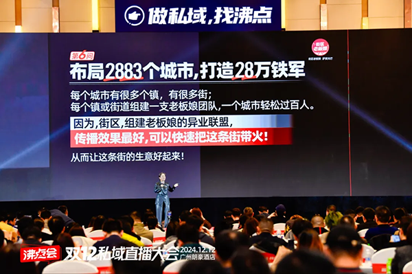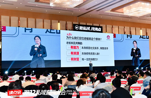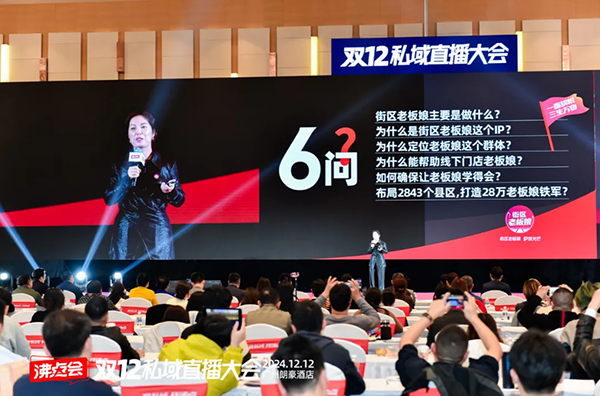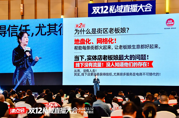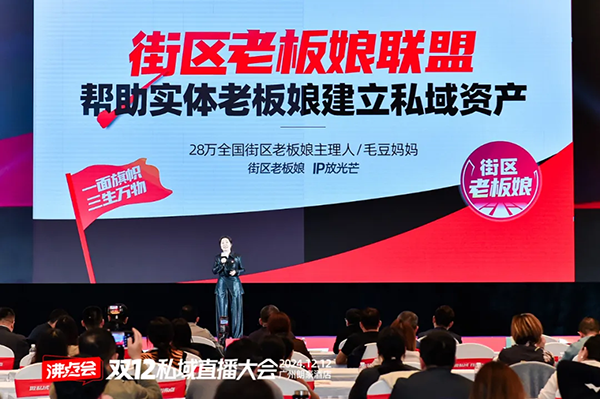 2024年12月12日,在廣州朗豪酒店,雙 12 私域直播大會隆重舉行。此次大會,街區老板娘創始人毛豆媽媽分享了:街區老板娘聯盟幫助實體老板娘建立私域資產以及街區老板娘項目背后的 “一面旗幟,三生萬物” 理念,讓大家對這個頗具特色的項目有了更深入的了解。