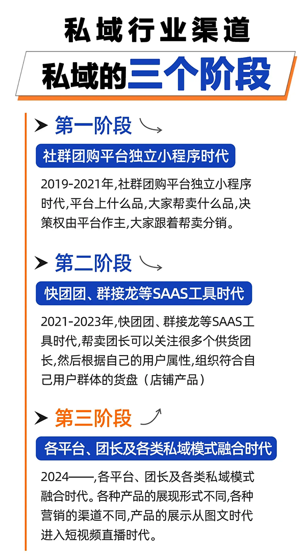 當下,市場競爭加劇,線下用戶進店量乏力,線上流量成本越來越高。市場從第一階段的線下渠道為王時代,到第二階段內容電商為王的時代,第三階段熟人信任的私域關系為王時代。