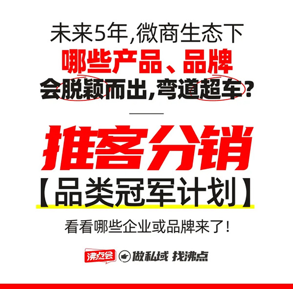 沸點會也將啟動推客分銷“品類冠軍計劃”,扶持具備潛力的各大品類代表,贏在未來5年!