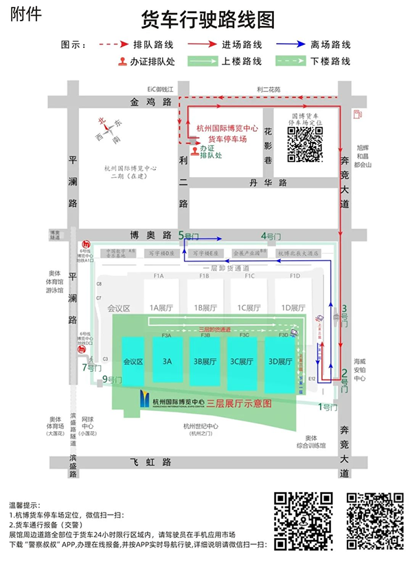 如果您選用貨車運輸展品,需先前往展會服務臺辦理貨車證。辦妥后,憑借貨車證,您便能駕駛貨車駛入展館卸貨通道。至于具體行駛路線、停車場定位以及通行證辦理等詳細信息,可查看附件《貨車行駛路線圖》,里面有清晰指引,助您順利完成運輸。