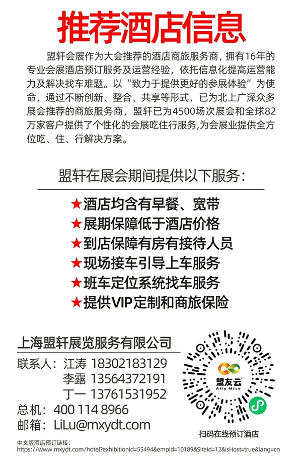 為了讓您的行程更加安心無憂,盡早規劃并預訂酒店是關鍵。可以選擇主辦方精心篩選推薦的酒店服務商,他們提供的服務品質與便捷性都有保障;也能在攜程、飛豬等知名旅行APP上,根據自己的喜好,自由挑選心儀酒店 。