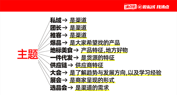 沸點會的主題設計以“私域渠道”為核心,延伸出八大垂直場景,并適配直播等新興形式: