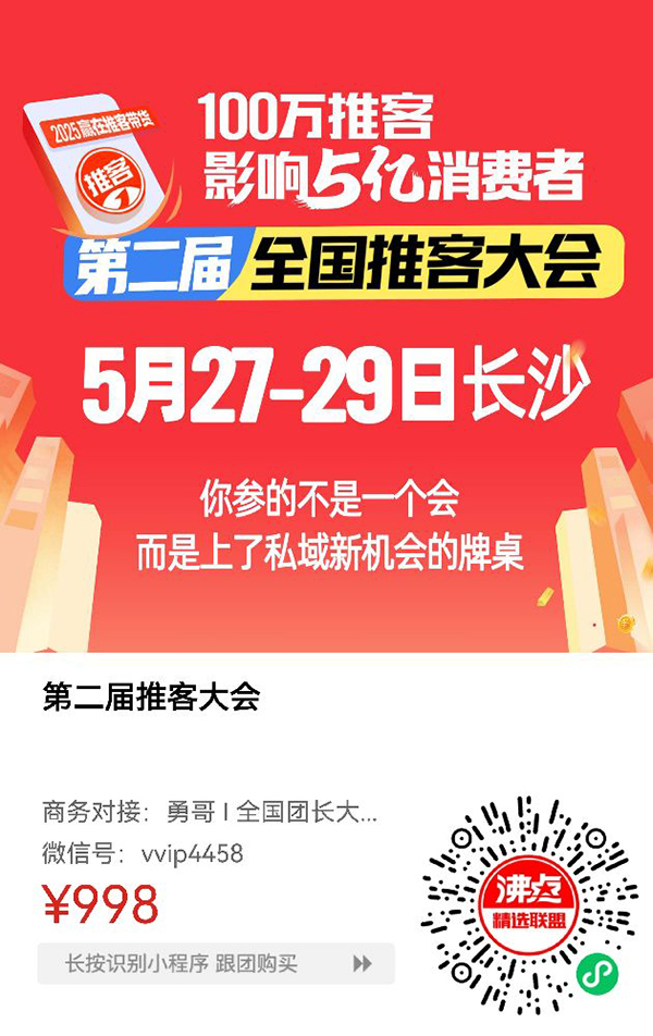 推客經(jīng)濟(jì)的爆發(fā)離不開(kāi)行業(yè)基礎(chǔ)設(shè)施的完善。2025年5月27-29日,第二屆全國(guó)推客大會(huì)暨貨源展將在長(zhǎng)沙舉辦,這場(chǎng)由沸點(diǎn)會(huì)發(fā)起的行業(yè)盛會(huì),為從業(yè)者提供兩大核心價(jià)值: