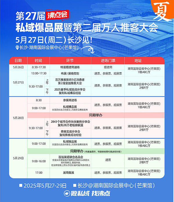 - 5月28-29日:推客選品展會(食品生鮮、美妝個護、母嬰玩具、滋補健康等全品類爆品)。