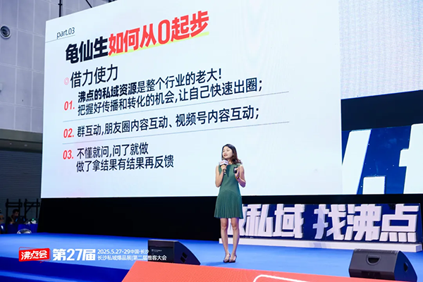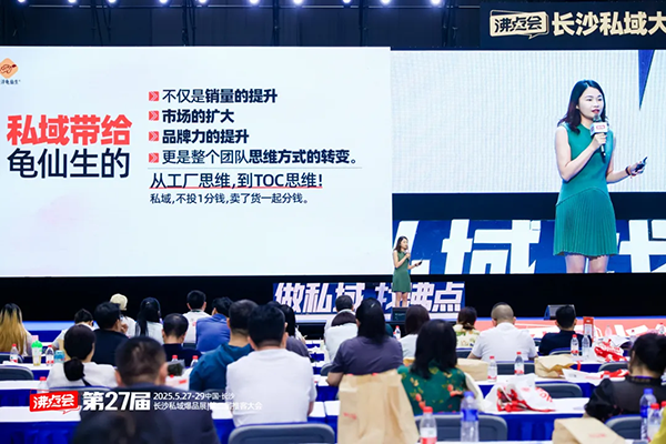 在長沙萬人推客大會的舞臺上,龜仙生品牌主理人范小敏以龜仙生品牌為例分享了入局私域的關鍵步驟。從單槍匹馬到組建4人核心團隊,從本地小廠到年銷 4000 萬 + 的全國品牌,她用 1 年時間書寫了私域電商的教科書級案例。