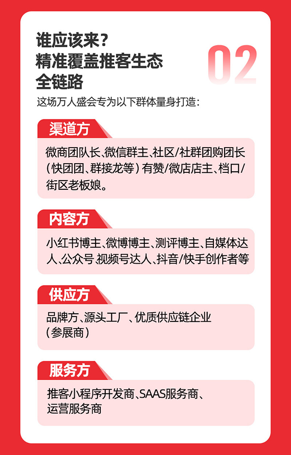 - 推客從業(yè)者:微商、社群團購團長(快團團/群接龍等)、私域店主(有贊/微店)、檔口老板等。