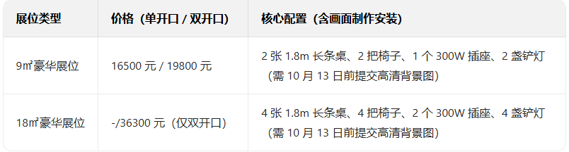 本次私域大會設置 9㎡、18㎡兩種豪華展位,均含定制搭建與核心權益,具體如下: